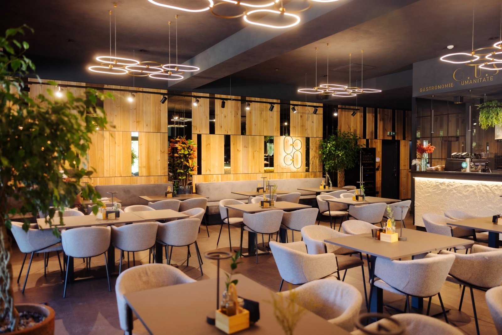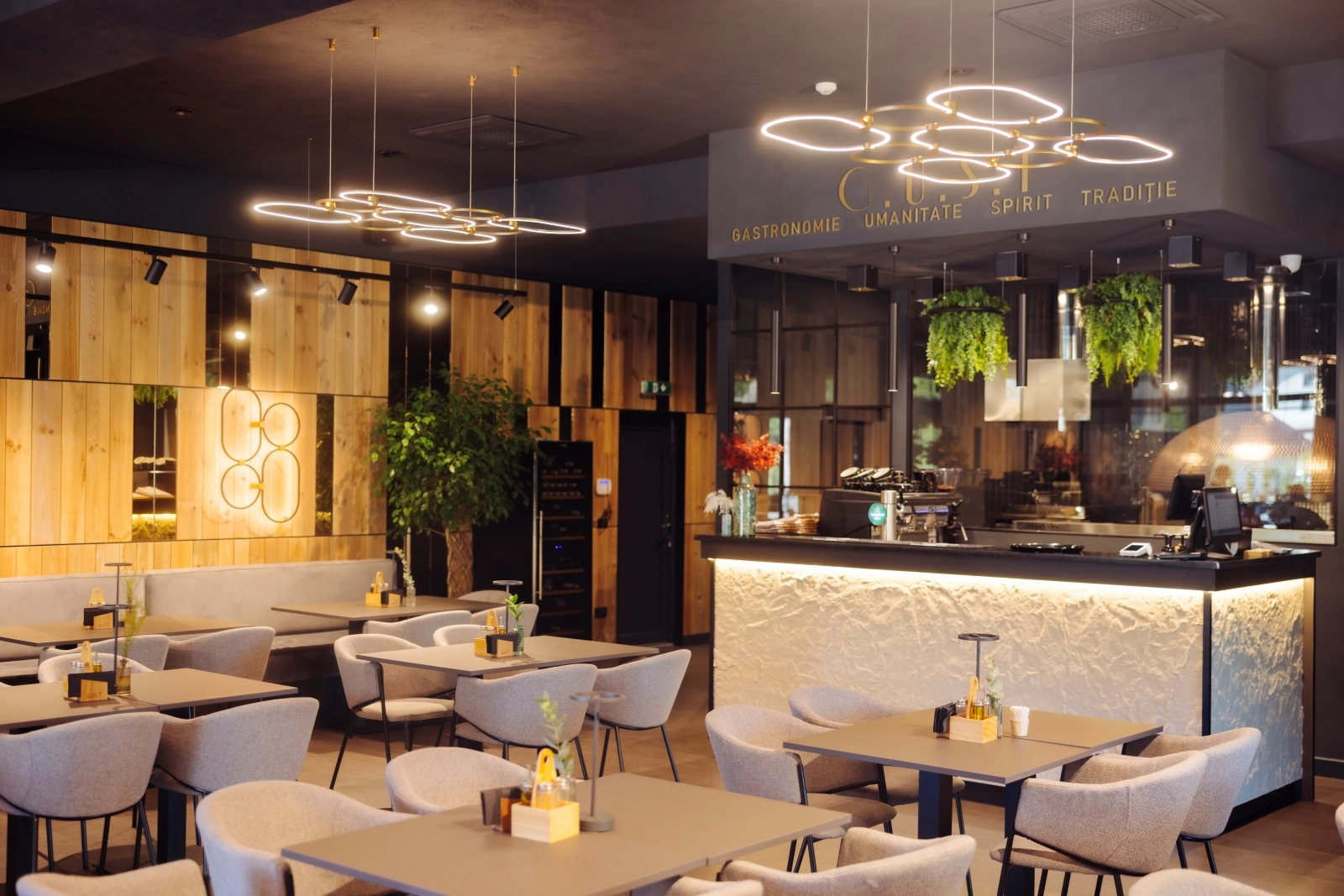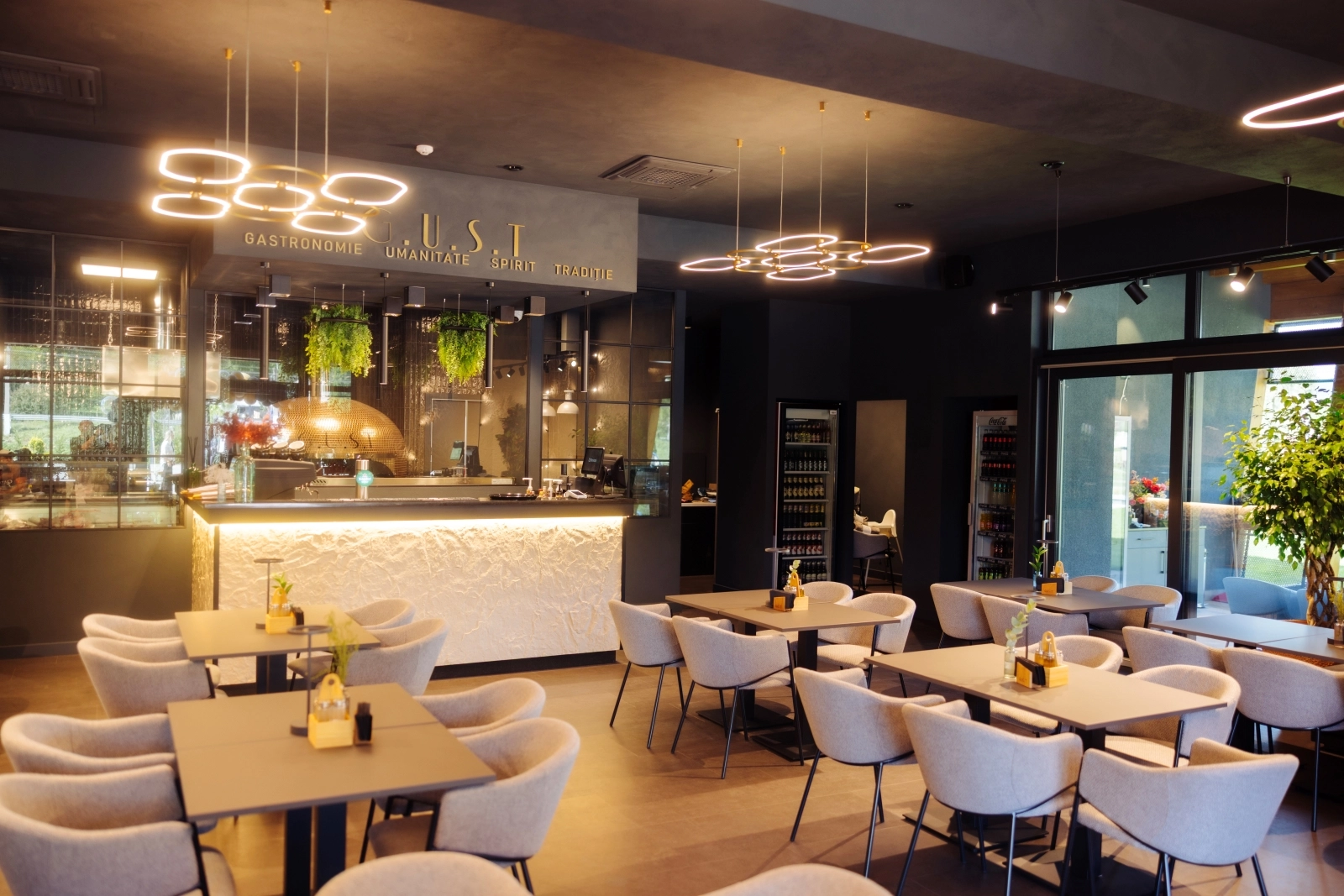 G.U.S.T se remarcă printr-un design elegant, cu geamuri mari ce oferă o priveliște captivantă către bucătărie, permițându-le oaspeților să urmărească procesul creativ de gătire. Vitrina noastră de expunere a steak-urilor și vitrina cu produse tradiționale vă promit o incursiune în gastronomia Maramureșului, fiind un adevărat festin pentru simțuri.
